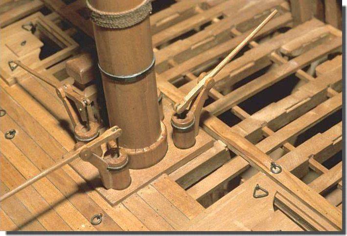 En avant du mât, le bitton de grand hunier et un bau du troisième pont.