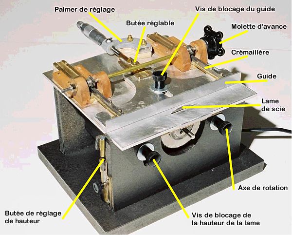 de petits bois de châssis vitrés ou de futurs caillebotis. Entre le cutter à la coupe hasardeuse et la scie circulaire dite « de table » qui va exploser votre placage, on conviendra qu’une petite scie circulaire de haute précision adaptée à cet usage particulier n’est pas sans intérêt. |