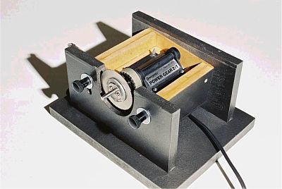 Deux jouées sont collées vissées sur un socle en Novolam de 15 mm, une des jouée est évidée pour le passage de la lame. Deux tiges filetées, sous fourreau laiton, vont assurer l’une, à droite, l’axe de pivotement du support moteur et l’autre à gauche, son blocage à la hauteur souhaitée. |